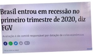 – A última bazófia dele é que o Brasil sairá voando da pandemia, à frente do mundo… E aí vem a FGV e diz que o país entrou em recessão no 1º trimestre de 2020, encerrando um ciclo de fraco crescimento de três anos (Temer e Dolsonaro, antes da crise do covid19.O nome do vírus é Guedes!