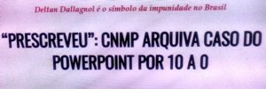 – No mesmo dia, a ação de Lula contra Dallagnol e seu power point no CNMP foi arquivada, apesar de 08 conselheiros terem dito que o power point foi errado e que Dallagnol extrapolou suas funções. Repito e completo a pergunta: pra que CNMP e pra que CNPJ?