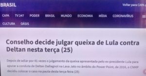 – Lula entrou com representação contra Dallagnol no CNMP por causa daquele famoso power point que o acusava de chefe da corrupção na Petrobras. O CNMP adiou o julgamento por 41 vezes, certamente esperando setembro chegar, quando a representação prescreveria.
