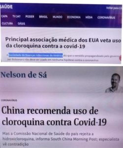 – Devem estar no mato sem cachorro agora: a China liberou a cloroquina para o tratamento do covid19 e a Sociedade de Doenças Infecciosas da América proibiu o seu uso.