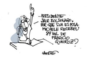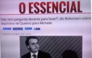 – Desta vez, ele não falou em porrada quando perguntado sobre os depósitos do Queiróz na conta da 1ª Dama. Só retrucou: “Com todo o respeito, não tem uma pergunta decente para fazer? Pelo amor de Deus”. E não respondeu…