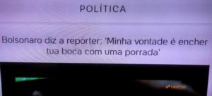 – “Minha vontade é encher tua boca com uma porrada, tá”…. Frase comum em uma briga de rua. Ou em briga de marido e mulher. Ou de jogador após levar uma canelada. Incomum neste caso, pois foi dita pelo presidente do Brasil a um repórter, numa catedral… Triste Brasil.