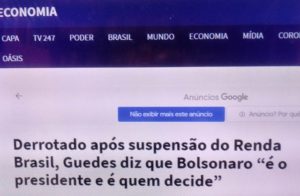 – Agora, o Mito quer renomeá-lo para Renda Brasil e assumir o lugar de Lula como o novo padim padi Ciço. E os bem nascidos e a grande imprensa, orgásmicos, dizem que o PT está bebendo do próprio veneno. E esperam um bom Renda Brasil. Porque não é petista?