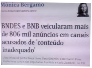 – Análise do Tribunal verificou que estes bancos veicularam mais de 806 mil anúncios em 10 canais do YouTube acusados de publicar “conteúdos inadequados”, alguns deles useiros e vezeiros em fake news e disseminação de ódio, como Folha Política, Bernardo Kuster, Terça Livre e Sara Winter.