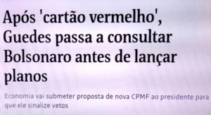 – Enquanto isto, a equipe do Guedes, que recebeu cartão vermelho do Mito por querer “tirar dos pobres pra dar pros paupérrimos”, continua buscando uma fórmula pra incrementar o Bolsa Família… Acho que os beneficiários do programa devem começar a se encostar na parede…
