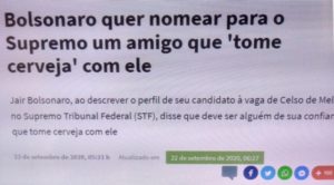 (bleorgh.com) – Depois de dizer que iria indicar um cara terrivelmente evangélico pro STF, o Mito mudou de ideia e, agora, diz que quer um companheiro pra beber cerveja com ele como ministro. Aras, Mendonça, Bretas e Jorge Oliveira já encomendaram os engradados pra ir treinando.