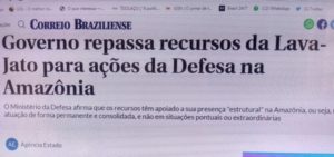 – É estranha, pois, a notícia do Estadão que o ministério da Defesa vai receber meio bilhão daquela multa da Petrobras que a Lava Jato queria pra ela, com o objetivo de implantar satélites de monitoramento da Amazônia, algo que o INPE já faz há muito tempo.