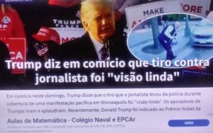 (bleorgh.com) – Jornalistas brasileiros, tomem tento e se preparem: o presidente Trump disse em comício para seu cattle que a visão de um jornalista levando tiro da polícia em uma manifestação em Minneapolis “was beautfull”. O Mito vai querer repetir a frase aqui e precisa do fato…