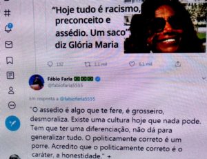 (bleorgh.com) – Glória Maria, uma negra global, que é estrela por méritos próprios, postou que “…O politicamente correto é um porre. Acredito que o politicamente correto é o caráter, a honestidade” , pra orgasmo da direita. Confesso que não entendi…