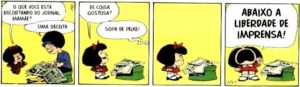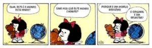 Um dia após me obrigar a assistir até o fim o debate eleitoral americano e ter a certeza que o mundo continua correndo muito perigo nas mãos de um ser humano desprezível como Trump, o herói do Mito, leio que Joaquin Salvador Lavado, o Quino, criador de Mafalda, morreu. Mais um exemplo da minha juventude que vai se embora. De um mundo em que não tem nascido mais bons exemplos.
