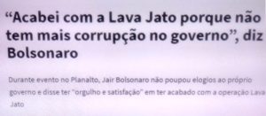 – Nada disso e ‘otras cositas mas’ é corrupção, diz o Mito, razão pela qual ele acabou com a Lava Jato, que não tinha mais o que investigar. E tem gente que acredita! Triste Brasil!