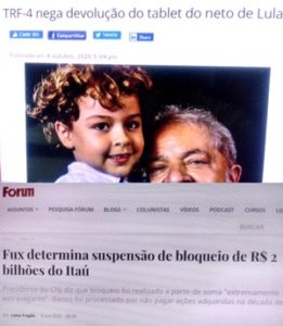 (bleorgh.com) – No Brasil, as coisas funcionam assim: o pedido de devolução de bens da família Lula apreendidos há 04 anos, incluindo o tablet de seu neto falecido, foi negado pelos 03 desembargadores do TRF-4, alegando uma tecnicalidade: que a entrada do pedido foi depois do prazo.