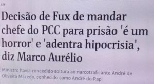 – Aprovado o pacote pelo Mito, com vetos, o Artigo 316 permaneceu e, com base nele, Marcou Aurélio Mello mandou soltar André do Rap. Com a repercussão, o presidente do STF cancelou a decisão do colega e mandou prender o bandidão de novo. Contra a lei! Viva o Brasil!