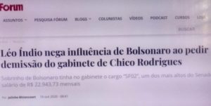 – Nenhum comentário sobre a “união quase estável” de tantos anos, nem sobre as “boquinhas” federais que ele tem em Roraima e, muito menos, sobre o fato dele empregar o primo Léo Indio, o inseparável amigo do Pavão Misterioso…