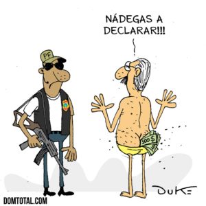 – No caso do senador com dinheiro na bunda, o Mito mandou a “relação quase estável” com o senador à merda e jogou o porco nos braços dos partidos políticos que o apoiam. E os partidos xingam o ministro Barroso por pedir o afastamento do bundão do Senado…