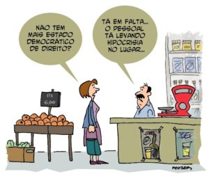 – Mas as campanhas prosseguem. Se um deles for eleito, poderá ser cassado ou preso algum ou muito tempo depois. É a presunção de inocência, dizem os juristas… A presunção é um direito, claro, mas com a Justiça lerda e hipócrita que nós temos, é um desrespeito aos eleitores…