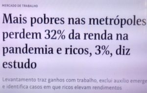 – Houve ajuda da pandemia em parte desta desgraceira toda, mas os grandes culpados a gente sabe quem são: o patrimônio dos bilionários aumentou R$ 177 bilhões durante a pandemia, bem como os pobres perderam 32% da renda e os ricos perderam só 3%. Triste Brasil!