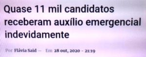 (bleorgh.com) – Todo mundo se indigna com a informação divulgada pelo TCU: 10.724 candidatos a prefeito e vereador na eleição municipal de 2020, que declararam patrimônio superior a R$ 300 mil, receberam parcelas do auxílio emergencial.