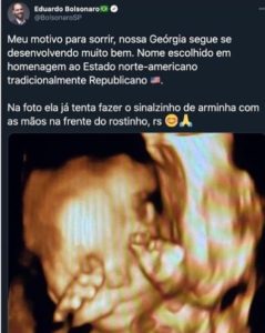 – Pra piorar, em boa parte deste tempo, o Brasil vivia uma ditadura brutal, que censurava imprensa, filmes, músicas e prendia, torturava e matava quem protestasse. Mesmo assim, é chocante o twit do 003 sobre sua filhinha. Com a Georgia virando democrata, ele mudará o nome dela?
