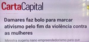 – Foi o Dia Internacional da Eliminação da Violência contra a Mulher. Sabem como d. Damares comemorou? Confeitando bolo com chantilly… E, dizendo que nunca fizera aquilo, pergunta: ‘Será que é por isso que meu marido foi embora de casa?’Recado óbvio: ‘Donas de casa não apanham!
