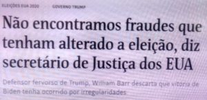 (bleorgh.com) – Secretário de Justiça americano, um dos mais ardorrosos apoiadores de Trump, e mais alta autoridade do governo em questões judiciais, declarou que não houve irregularidades na eleição de Biden, cujo resultado é contestado como fraudulento por seu chefe.