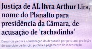 – Foi assim que o deputado Arthur Lira, do PP/AL, se livrou do processo instaurado pelo MPF e ficou livre, leve e solto pra disputar a presidência da Câmara, com apoio do Mito, sem dúvida, o verdadeiro motivo pra sentença do juiz alagoano… E daí? A Justiça é cega, não é mesm…?