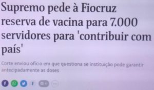 bleorgh.com) – Primeiro, foram os procuradores do MP de São Paulo que pediram ao governo que os colocassem como prioritários para receber a vacinação. Agora, é o STF e o STJ que pedem à Fiocruz para reservar, antecipadamente, vacinas para imunizar juízes e servidores.