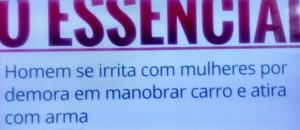bleorgh.com – A manchete aí de baixo se refere a um fato ocorrido em Cuiabá. Mãe e filha estavam tendo dificuldade de estacionar o carro e o motorista de outro carro, p..o* com a demora, depois de acender farol alto e buzinar, deu um tiro de .40 na direção das duas. Não acertou!