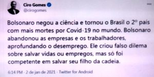 – Daqui a 14 dias, mais imbecis estarão contaminados e, queira Deus, sem hospitais públicas para atender, terão que pagar pela estupidez.