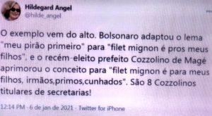 – Democraticamente, são eleitos e distribuem o poder pela famiglia. Um povo politica e historicamente analfabeto gosta do toma lá, dá cá… Sempre sobram migalhas!