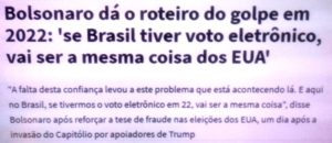 – O Mito foi eleito em 2018 e, desde o 1º dia, prepara o golpe. Já “invadiu” o STF com empresários, já participou de manifestações anti democráticas em frente ao Forte Apache e, agora, já insinua golpe caso o voto seja eletrônico em 2022. E ele vai tentar, não tenho dúvida.