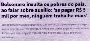 – É óbvio que ele acha que se o brasileiro ganhar R$5.000,00/mês do goveno, não vai mais trabalhar. O uso do cachimbo faz a boca torta. No caso dele, a mente torta…