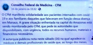 – Na pandemia, minha fé foi renovada em médicos/as e todo o pessoal de unidades, clínicas e hospitais que sacrificaram a vida pessoal para curar pessoas e salvar vidas. Mas continuo indignado com suas entidades de classe: 51 pessoas morrem asfixiadas e apenas uma nota de protesto?
