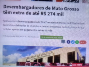 – … 29 desembargadores do Tribunal de Justiça de Mato Grosso receberam, em média, R$262,8 mil de salários e extras apenas no mês de dezembro. Os 7,6 milhões pagos pelo Estado daria pra sustentar mais de 08 mil famílias com auxílio-emergencial por 03 meses… Triste Brasil!