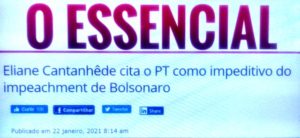 – O PT quis ter candidato à Presidência e, por isso, o Mito foi eleito… O PTnão apoiou as reformas aprovadas no Congresso e, por isso, o Brasil se afundou mais… o PT está apoiando o candidato do Mito à Presidência do Senado e, por isso, o impeachment do Mito não sai! É ou não é fixação?