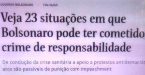 – 05 anos depois, a Folha de São Paulo aponta 23 crimes de responsabilidade cometidos pelo Mito, pedindo seu impeachment, no que foi acompanhada pelo Estadão. Com Dilma, foi fácil: a Mídia já criara o anti petismo, financiada pela elite. Agora, não vão pular do barco, ou melhor, do Guedes…