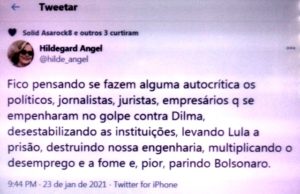 bleorgh.com – Eu me arrisco a responder a pergunta da Hildegard Angel nas redes: nunca existem erros em atitudes passadas destes profissionais… O contexto determina a posição dos jornalistas; a hipocrisia faz parte da postura dos políticos e juízes são deuses, nunca erram…