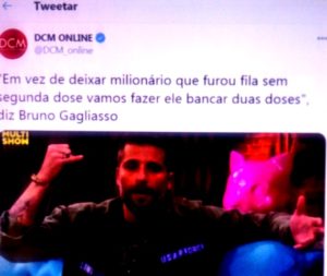 bleorgh.com – Eu sugeri não deixar o fura fila tomar a 2ª dose da vacina, tendo que tomar a 1ª de novo só no final de todas as filas. Bruno Gagliasso sugeriu que o melhor seria o fura fila pagar pelas duas doses… Infelizmente, este é um dos problemas do Brasil.