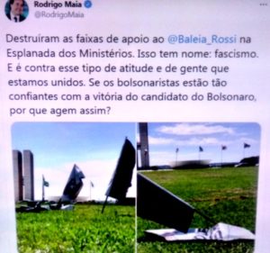 bleorgh.com – Hora que eu tenho vontade de vomitar: no último dia em seus 04 anos de presidência da Câmara, Rodrigo Maia, o Botafogo da Odebrecht, acusa o fascismo dos bolsonários, logo ele que participou do golpe contra Dilma, 1º passo da eleição do Mito e da fascistização…