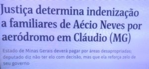 – Durante anos, Aécio usou avião do Estado e o aeroporto de Cláudio pra ir descansar em seus domínios. Mas a justiça mineira não gostou da safadeza do Estado e mandou o Estado (eu, você, nós) pagar à família do Aécio pelo Aécio usar um aeroporto nas terras da família do Aécio.