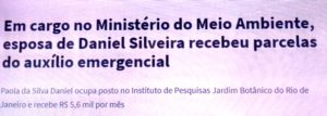 – É que sua mulher, apesar de funcionária do Instituto de Pesquisas do Jardim Botânico, órgão público, (salário de R$5,6 mil/mês), recebeu 04 parcelas do auxílio-emergencial (R$ 1.800,00), como se desempregada fosse. Consta do sistema de pagamento da CEF…