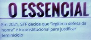 – Ou seja, neste Brasil machista e violento e que ainda vive no século passado – jurídica, econômica e politicamente – justificar o assassinato de uma mulher invocando defesa da honra masculina, deixou de valer apenas ontem, 89 anos depois! Não é atoa que o Mito se elegeu presidente!