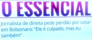 – É o caso do colunista da IstoÉ, Ricardo Kertzman, que escreveu: “Bolsonaro é culpado, mas eu também. Perdão! A mim me parece que o sujeito opera em duas frentes: a loucura, que acredito lhe ser nata. E o método, a fim de levar o país ao caos sanitário, econômico e social. E ao golpe!” Modéstia às favas, eu estou falando isto há meses!