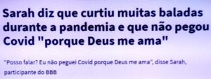 bleorgh.com – Sarah, participante do BBB, declara alto e bom som: “Posso falar? Eu não peguei Covid porque Deus me ama”. Pois é! O presidente da Tanzânia, John Magufuli, negacionista radical e não admitiu distanciamento social , máscaras e vacinas em seu país…