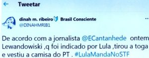 – Além dele, Carmem Lúcia e Tóffoli também foram indicados por Lula… e Fachin, Barroso, Rosa Weber e Luiz Fux o foram por Dilma. O placar, portanto, deveria ter sido 8×3 contra julgamento da ação pelo Plenário. Ou parcial é apenas o juiz que vota contra vontade da jornalista?