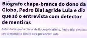 – Já Pedro Bial foi um bom repórter (sua cobertura da queda do Muro de Berlim foi expressiva). Mas deixou de sê-lo… e virou show man, para comandar o BBB e o Conversa com Bial. E, como estrela do show business, mandou o Jornalismo pra p..a* que o pariu!