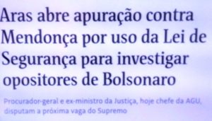 bleorgh.com – A briga de foice no escuro já começou… O PGR Aras abriu apuração contra o AGU Mendonça por invocar a Lei de Segurança pra investigar “inimigos” do Mito. Ele, por acaso, estaria preocupado com a liberda, a democracia e a Constituição brasileiras?