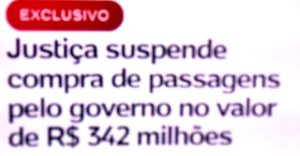 – A juíza quer explicações do porque o desconto pra compra direta caiu de 15% pra 3%. Já eu acho que a trapaça é mais embaixo: R$342 milhões divididos por 100 mil dá R$3.420,00 pra cada passagem… Passagens aéreas são caras, mas nem Brasília/Manaus ida e volta vale R$3.420,00!
