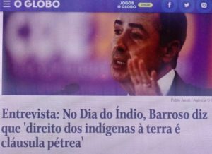 – Hoje, 19 de abril, as Américas comemoram o Dia dos Povos Indígenas – neste dia, em 1940, aconteceu o 1º Congresso Indigenista Interamericano. Pra lembrar a data, o ministro Barroso afirma que ‘direito dos indígenas à terra é cláusula pétrea’. Imaginem se não fosse!