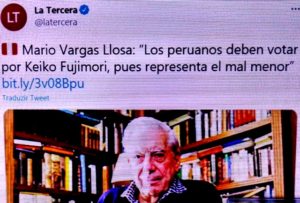 – Politicamente, foi um fracasso e passou a culpar o povo por eleger um “japonês” e não ele, um intelectual peruano. Como FHC, inveja e vaidade não são bons conselheiros. Daí, apoiar a filha do “japonês” nas eleições deste ano, “el mal menor”.